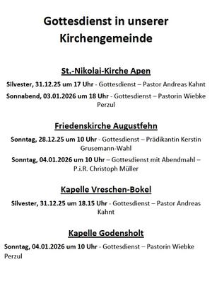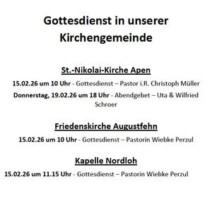 Aktuelle Gottesdienste in der Ev.-luth. KG Apen